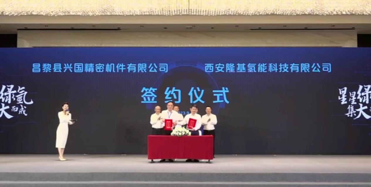 此外,在活動現場,隆基氫能還與昌黎縣興國精密機件有限公司(簡稱:興國鑄業)、惠生工程技術服務有限公司(簡稱:惠生工程)分別舉行了簽約儀式。這是設備制造端與工程設計端的強強聯合,共同推動綠氫產業的“大發展”。