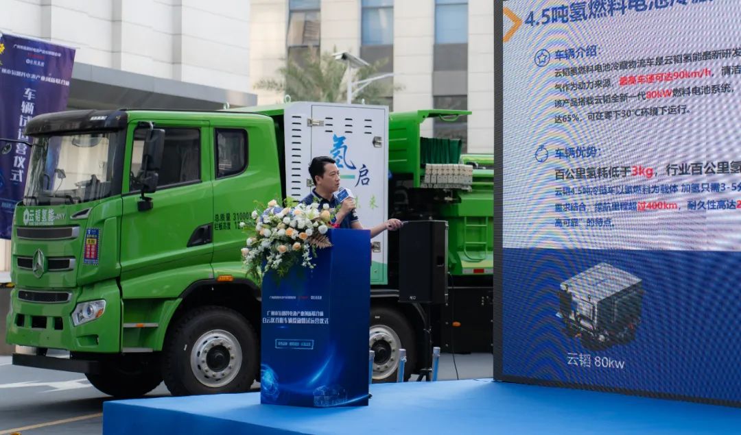 本次車輛試運營儀式在廣州市發展和改革委員會、白云區人民政府的指導下,由廣州市氫燃料電池產業創新聯合體、廣東云韜氫能科技有限公司共同主辦。