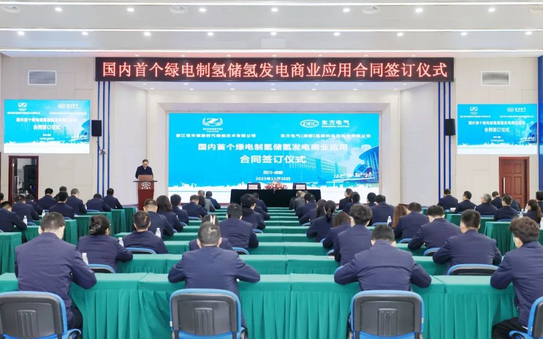 11月28日,國內首個且容量功率最大的綠電制氫儲氫發電商業應用項目簽約儀式在東方鍋爐舉行。該項目將在都江堰建設10兆瓦等級的工業園區氫儲能供電站,通過綠電制氫、氫儲能和氫發電保障工業園區峰電時段供電,打造工業園區綠色低碳電力供應新模式。
