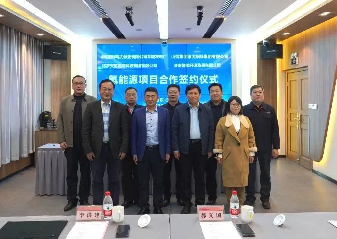 合作意向書由萊鋼集團黨委書記、董事長、總經理李洪建,華電國際萊城發電廠黨委書記、執行董事肖偉,格羅夫氫能源科技集團董事長郝義國,濟南魯能開源集團董事長馮玉花共同簽署。