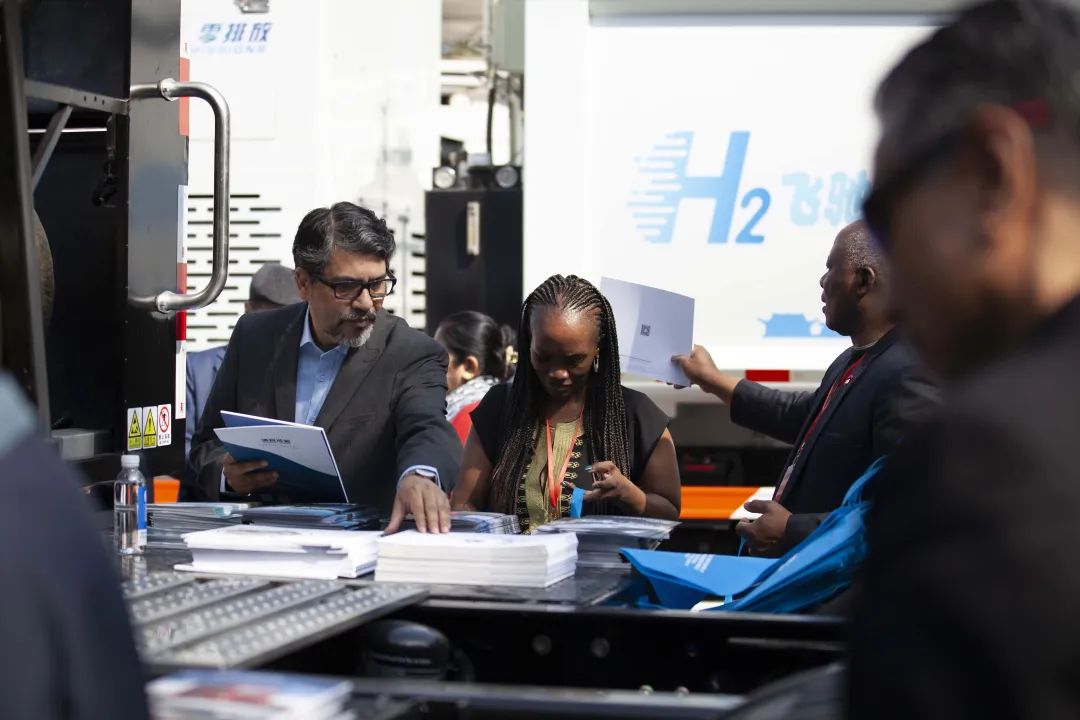 佛山市飛馳汽車科技有限公司(以下簡(jiǎn)稱“飛馳科技”)攜自主研發(fā)制造的燃料電池城市客車、自卸車、牽引車、環(huán)衛(wèi)車、冷藏車共六款車型盛裝亮相活動(dòng)現(xiàn)場(chǎng)。此次亮相的六款車型,以滿足不同運(yùn)營(yíng)場(chǎng)景需求,充分展現(xiàn)飛馳科技自主可控的研發(fā)制造實(shí)力,在活動(dòng)現(xiàn)場(chǎng)各國(guó)使節(jié)紛紛為飛馳科技提供的綠色駕乘體驗(yàn)點(diǎn)贊,對(duì)飛馳科技助力碳達(dá)峰、碳中和做出的努力表示高度認(rèn)可。