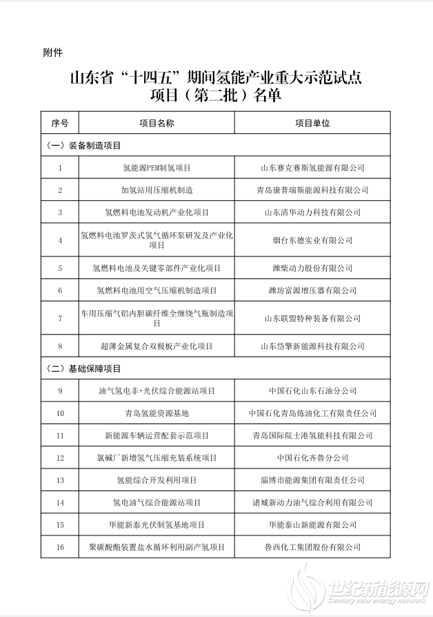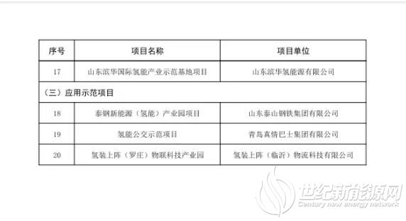 共計20個!山東省公示“十四五”氫能重大示范試點項目