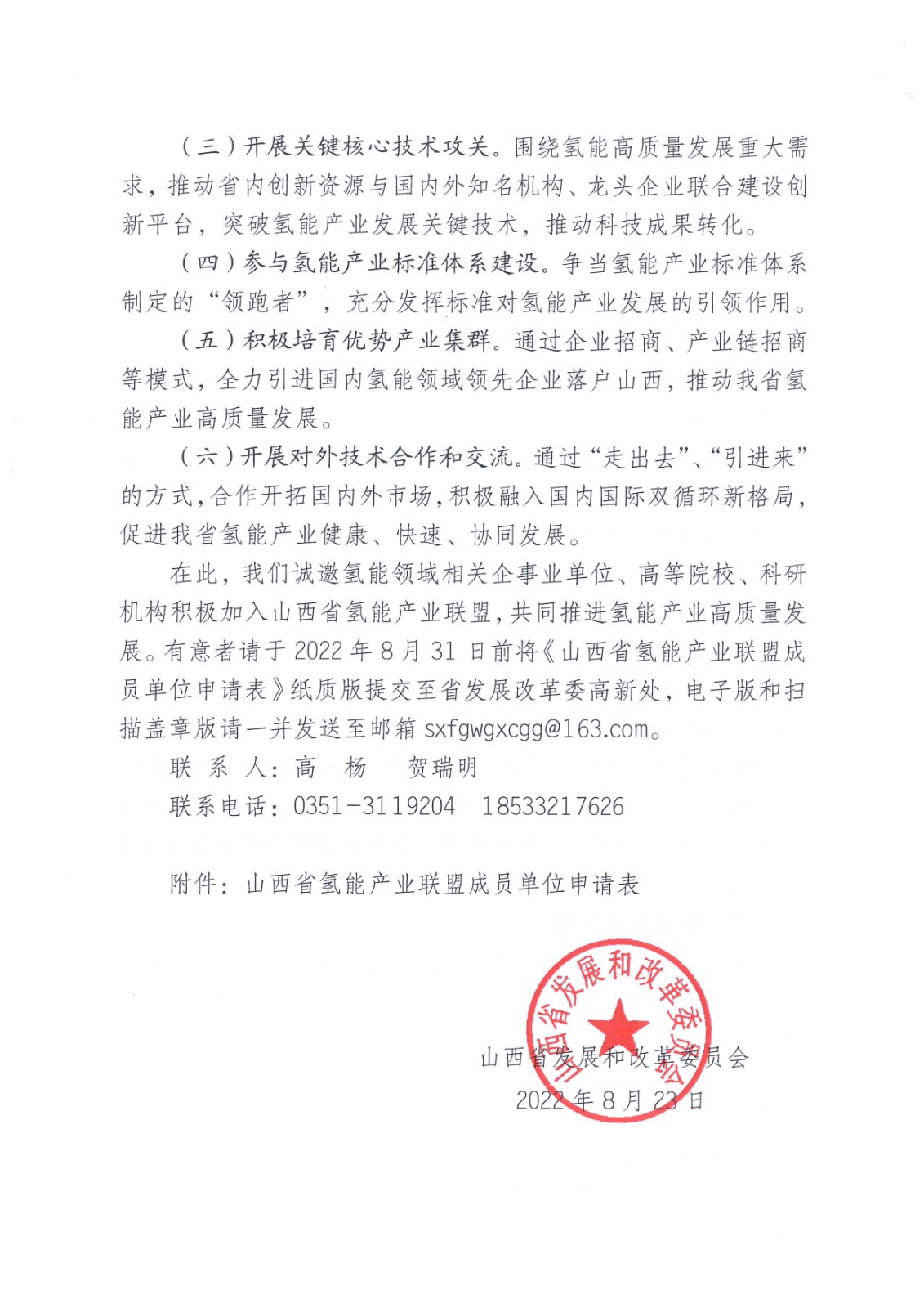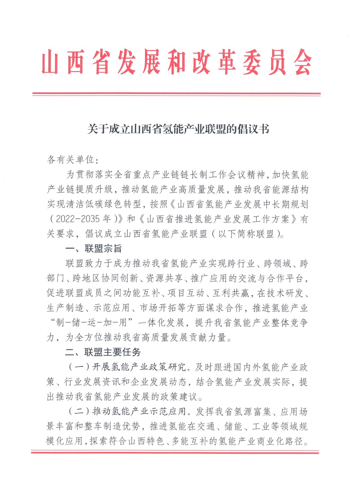 氫啟未來網(wǎng)8月24日消息,山西省發(fā)展和改革委員會在其網(wǎng)站印發(fā)關(guān)于成立山西省氫能產(chǎn)業(yè)聯(lián)盟的倡議書。其中提出,推動氫能產(chǎn)業(yè)示范應(yīng)用。發(fā)揮山西省氫源富集、應(yīng)用場景豐富和整車制造優(yōu)勢,推進(jìn)氫能在交通、儲能、工業(yè)等領(lǐng)域規(guī)模化應(yīng)用,探索符合山西特色、多能互補(bǔ)的氫能產(chǎn)業(yè)商業(yè)化路徑。原文內(nèi)容如下: