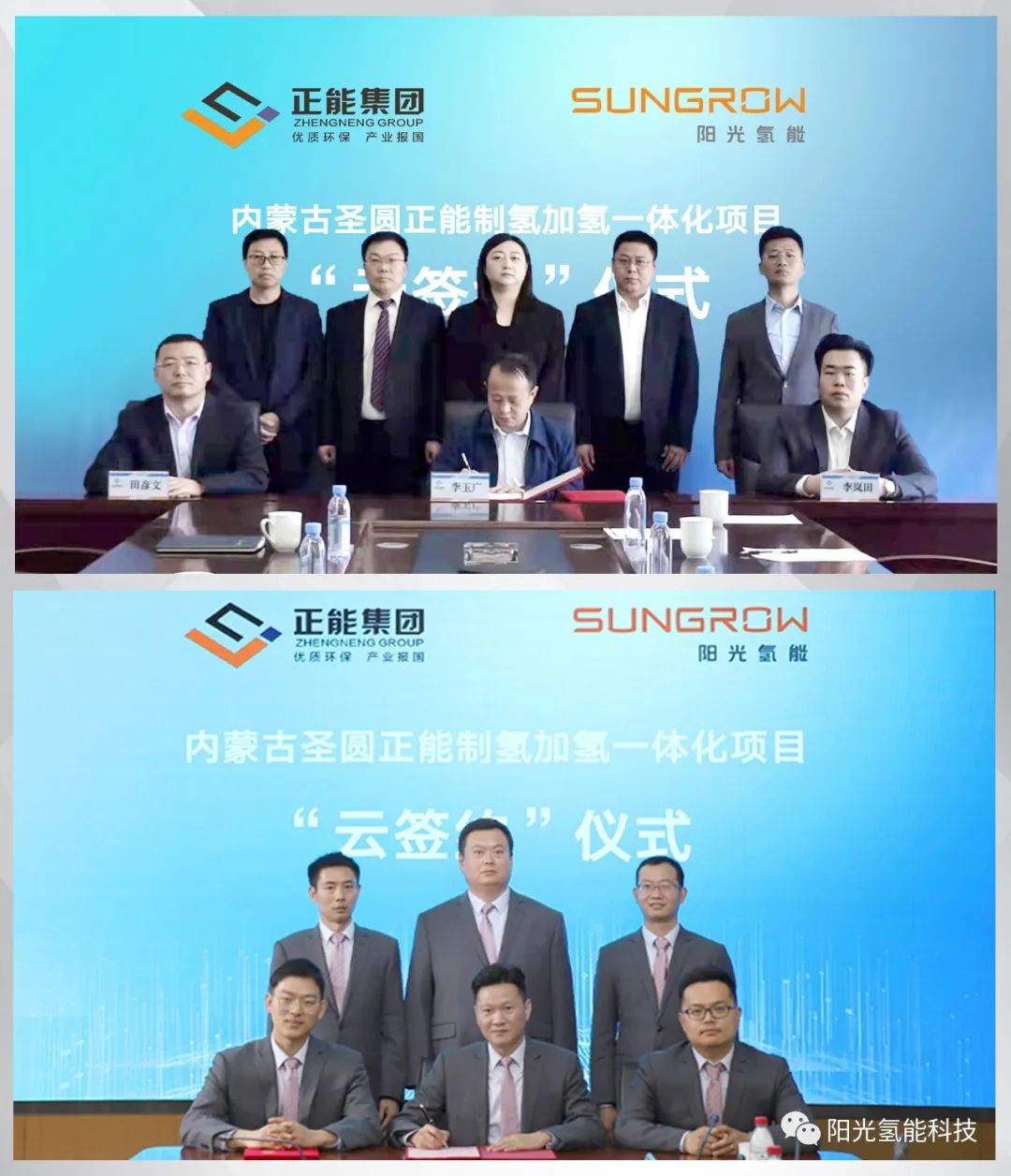 3月31日,陽光氫能與正能集團(tuán)舉行合作協(xié)議“云簽約”儀式,深化“綠電+綠氫”領(lǐng)域合作,共同打造“內(nèi)蒙古圣圓正能制氫加氫一體化項(xiàng)目”。正能集團(tuán)副董事長李玉廣、常務(wù)副總田彥文、圣圓伊政新能源總經(jīng)理王馨、正能氫能源科技有限公司總經(jīng)理李嵐田等領(lǐng)導(dǎo),陽光電源副總裁兼氫能事業(yè)部總裁程程、氫能事業(yè)部營銷總經(jīng)理方偉等領(lǐng)導(dǎo)出席“云簽約”儀式。