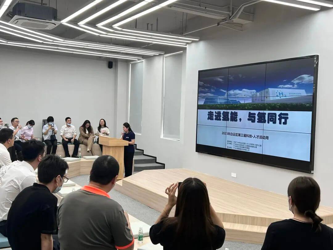 云韜氫能研發中心副總監池濱博士在氫能主題講壇環節中專題講解氫能產業發展及氫燃料電池應用,與在場的代表們圍繞氫能作為可持續供給、循環再利用的綠色低碳清潔能源如何通過技術創新與推廣應用破解“卡脖子”技術短板從而助力白云區新能源產業高質量發展提供強勁智慧引擎進行熱烈交流、積極獻言建策。