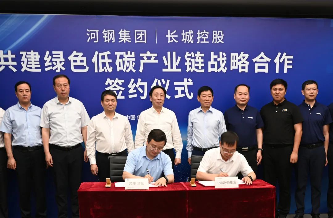 6月12日,河鋼與長城控股集團在保定簽署共建綠色低碳產業鏈戰略合作協議,雙方將攜手共建第一家國產品牌汽車綠色供應鏈,通過搭建綠色低碳供應鏈、共建氫能源產業生態,推動兩大集團之間資源配置更優、戰略協同更強的綠色低碳共同體建設。河鋼集團黨委書記、董事長于勇與長城汽車董事長魏建軍圍繞踐行國家“雙碳”戰略、深化合作推動綠色低碳發展等話題進行了深入交流,并見證雙方簽約。
