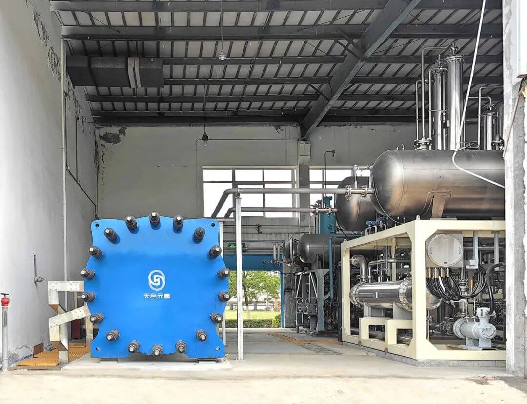 2021年,天合元氫成立。這個年輕的企業通過不斷推動創新,成功開發出高效能源轉化和可靠穩定性的“天擎”系列堿性水制氫設備。并在2022年成功首臺套下線運行?!疤烨妗毕盗幸云渥吭降男阅芴攸c,實現了高效制取綠色氫氣,并能為實現新能源發電提供可靠支持;其先進的設計和工藝流程,使其具有出色的能源利用效率和可持續性,為國內能源產業帶來了全新的變化,為綠色能源產業的發展注入了強大動力。
