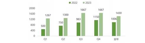 此外,根據權威機構統計,在ALK制氫裝備上,2022年堿槽新品的平均單槽最大產氫量為1006Nm3/h,2023年Q1、Q2、Q3對應的平均單槽規模分別為1267Nm3/h、1300Nm3/h、1667Nm3/h,呈現大標方趨勢。目前,國內已有8家企業宣布下線2000Nm3/h電解槽。2023年9月,隆基氫能再次刷新了國內已發布產品的最大單槽產氫量的記錄,達到3000Nm3/h。