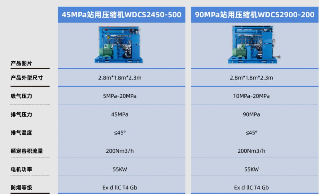 “完美適應加氫站“頻繁啟停、變工況、帶載啟停”的特殊工況,不需增配大容積緩沖容器或減壓系統,減少加氫站設備投入;”