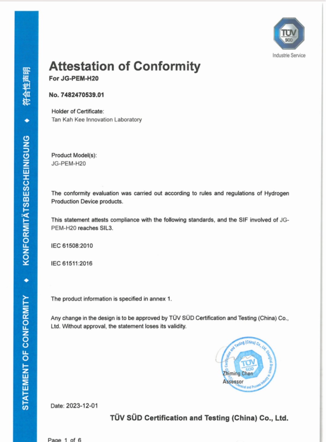國內首個!PEM電解水制氫設備順利通過SIL-3認證